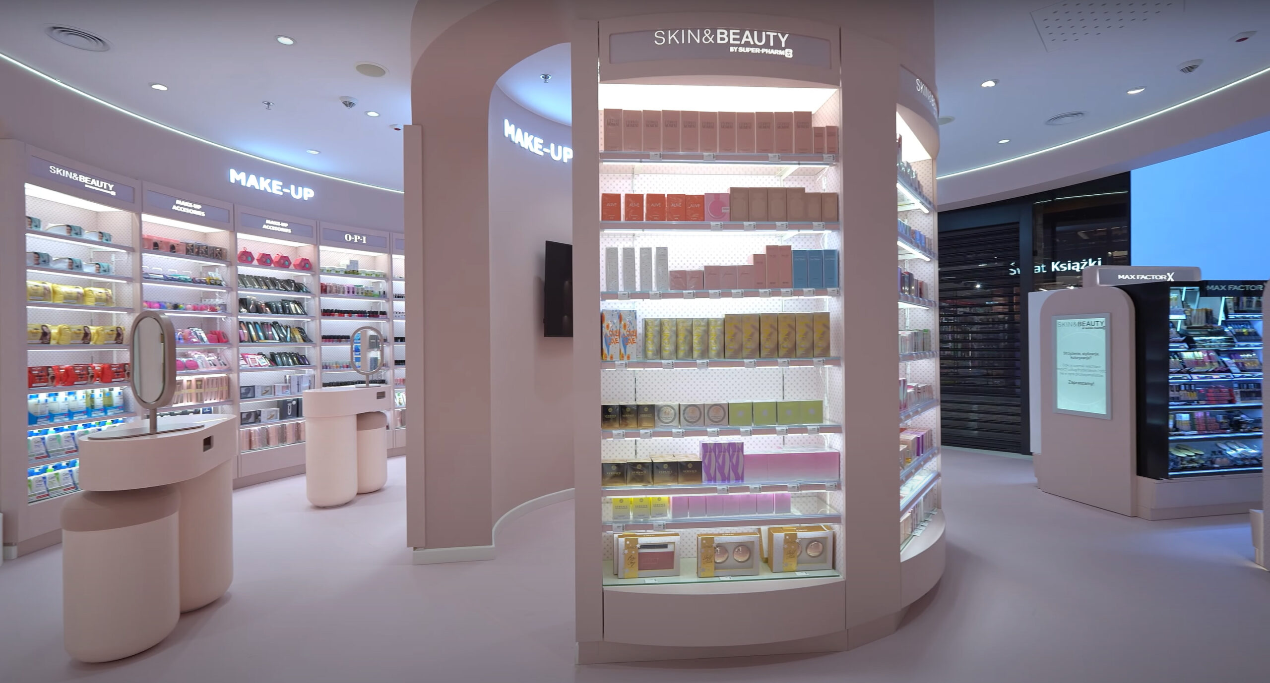 To innowacyjny concept store Skin & Beauty marki Super-Pharm, zlokalizowany w historycznym kompleksie Elektrowni Powiśle (Warszawa). Na 240 m² połączono aptekę, perfumerię i salon beauty, tworząc przestrzeń o wyjątkowej atmosferze i funkcjonalności. Połączyliśmy heritage przestrzeni z nowoczesnym retail experience — design, funkcja i usługi beauty w jednym, spójnym koncepcie.